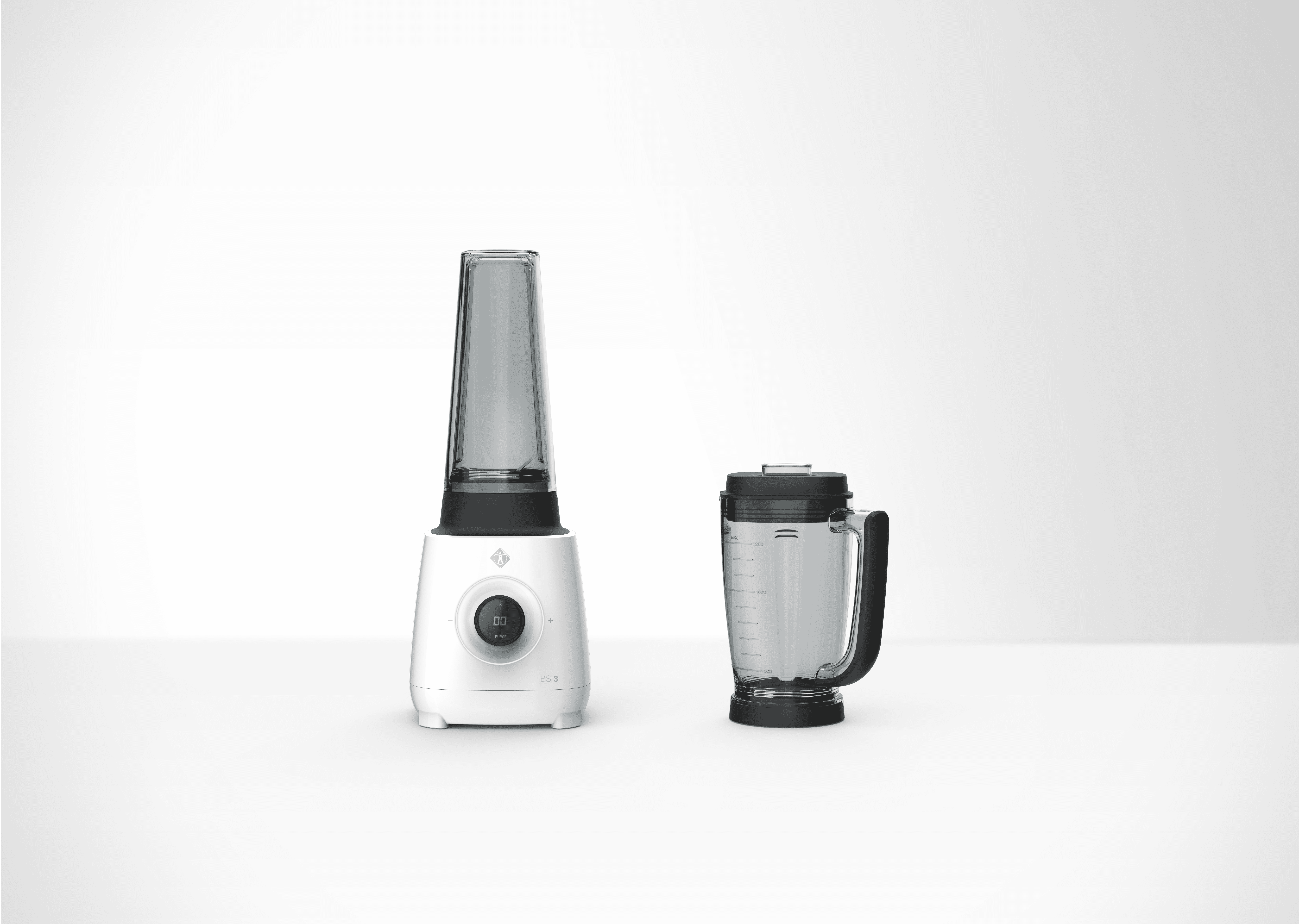 BS3는 1인 가구의 증가와 바쁜 현대인의 라이프스타일에 맞춰 기획된 고성능 퍼스널 블렌더입니다. 작지만 강력한 성능을 갖춰 바쁜 아침, 건강을 챙기는 나만의 시간을 완벽하게 지원합니다. IR D5와 BS5에서 정립된 '둥근 사각(Rounded Square)'의 디자인 언어를 계승하여, 컴팩트한 사이즈에서도 브랜드 고유의 견고한 아이덴티티를 유지했습니다.
