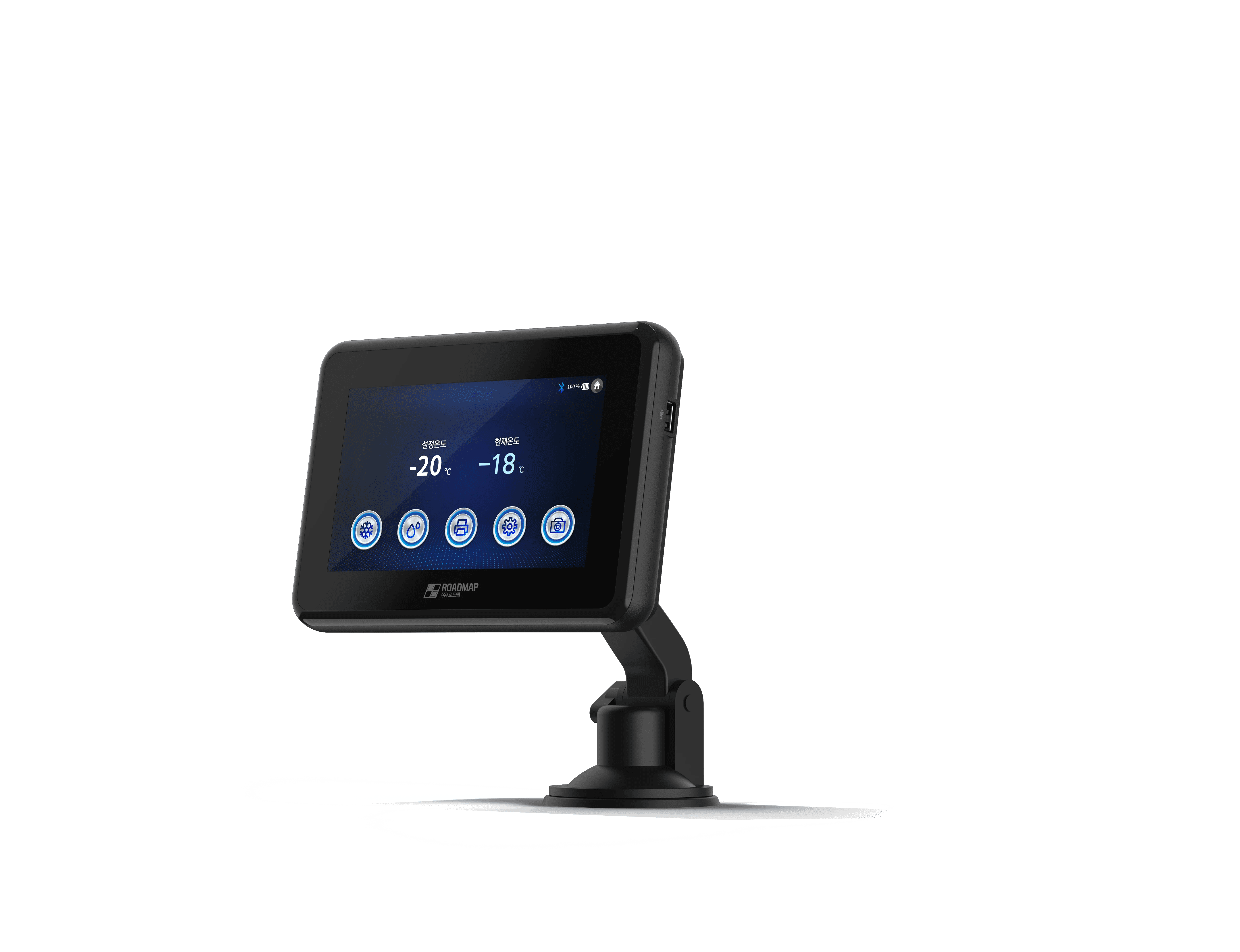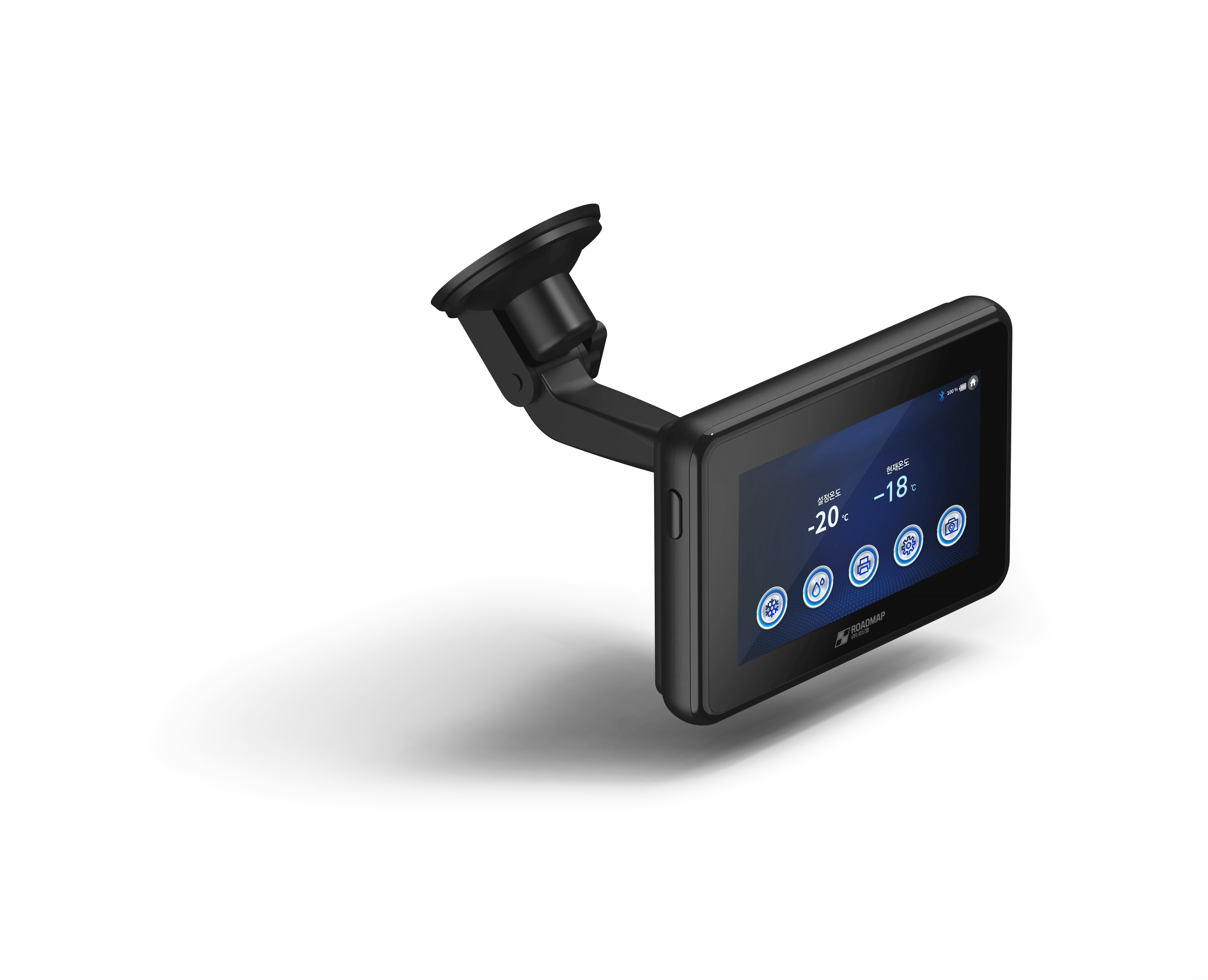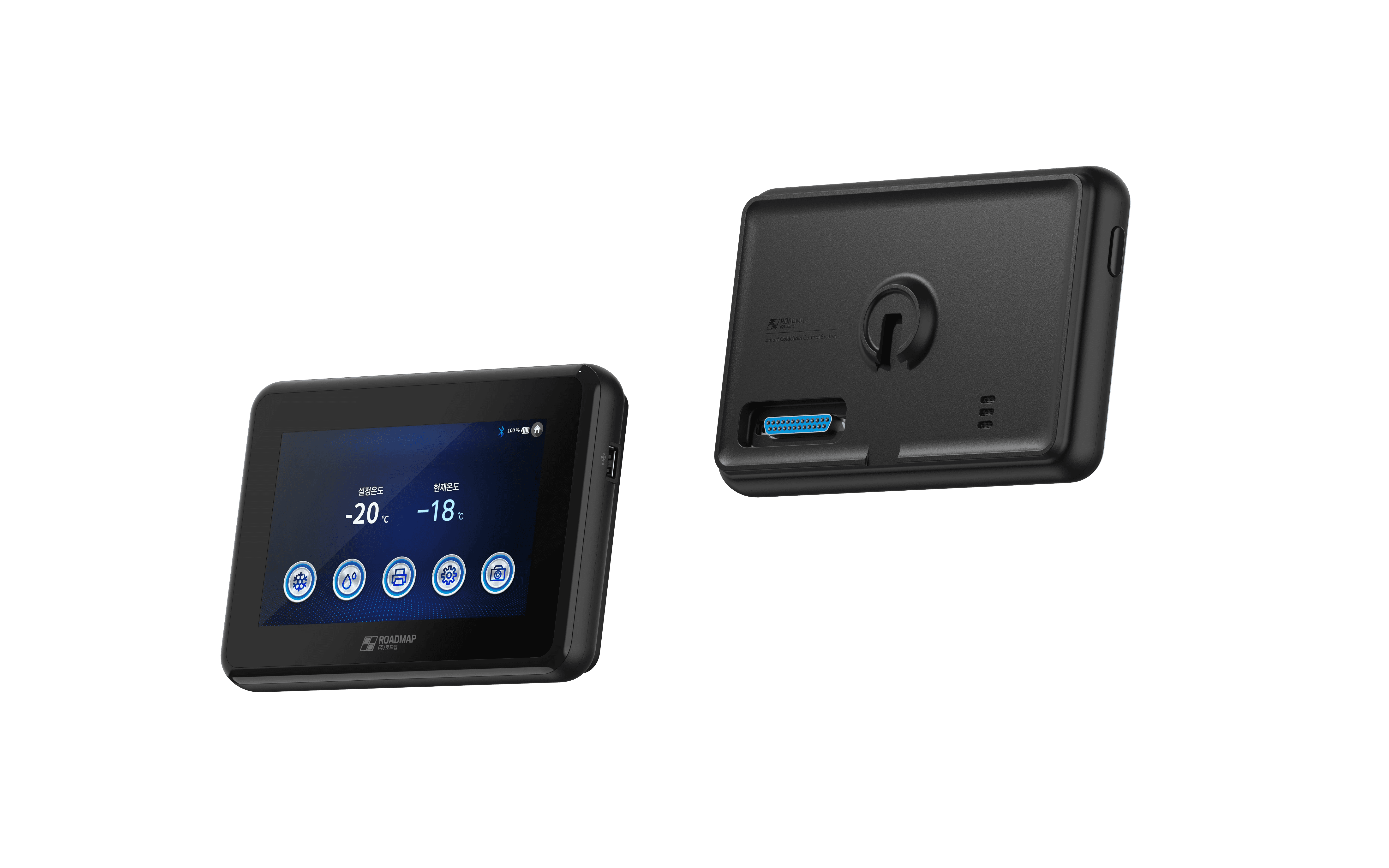 ROADMAP은 냉동 운송 차량의 효율적인 관리를 위한 콜드체인 컨트롤 단말기입니다. 우리는 기능 구현에만 치중하여 투박하고 기계적인 인상이 강했던 기존 산업용 장비의 관습을 탈피하고자 했습니다. 대신, 급격히 발전하고 있는 현대 상용차의 인테리어 수준에 걸맞은 온전한 IoT 디바이스의 조형 언어를 적용하는 데 집중했습니다.